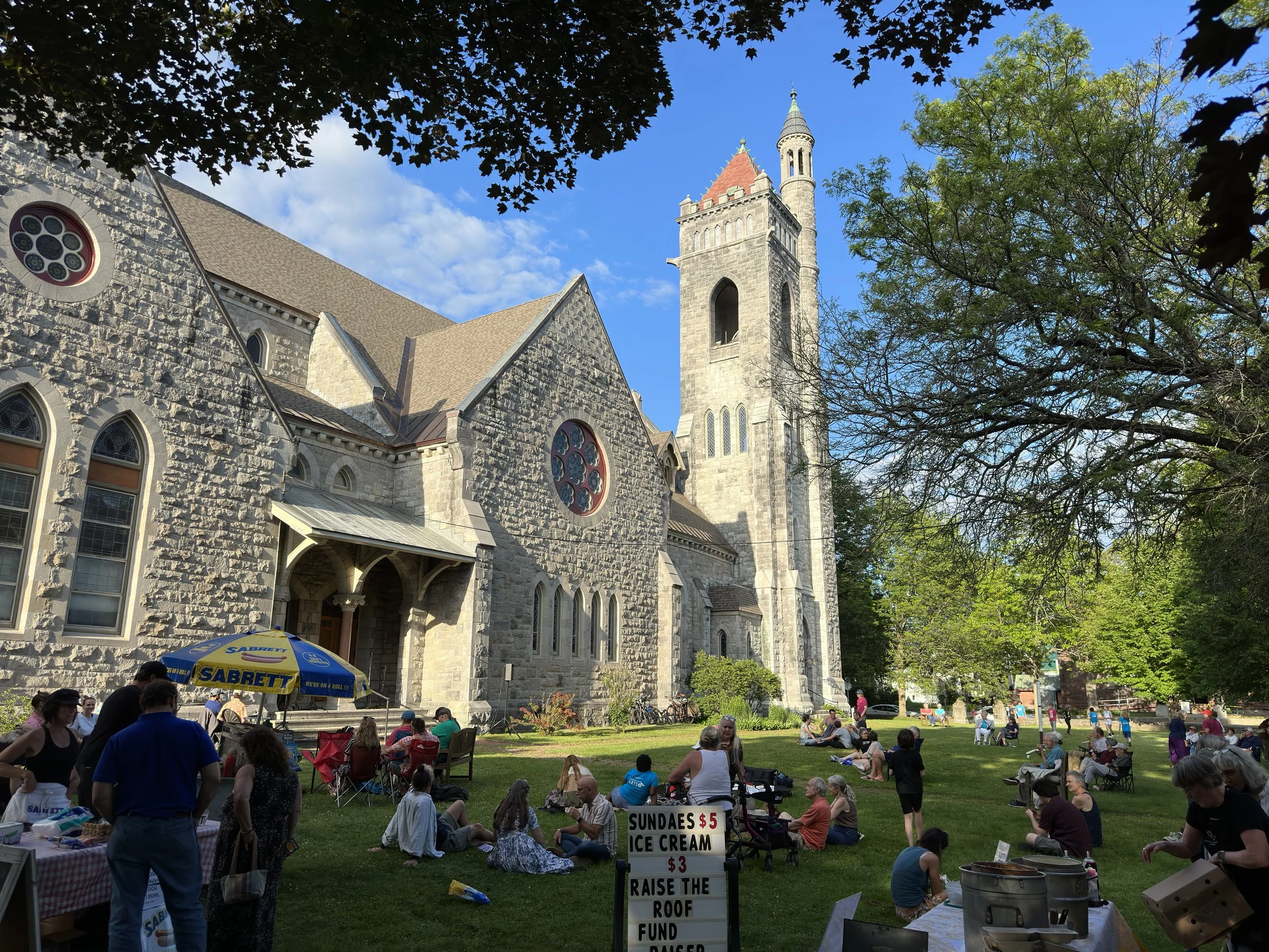 On the longest day of the year we partner with Catamount Arts to host our community on the Church grounds for performances by local music groups.